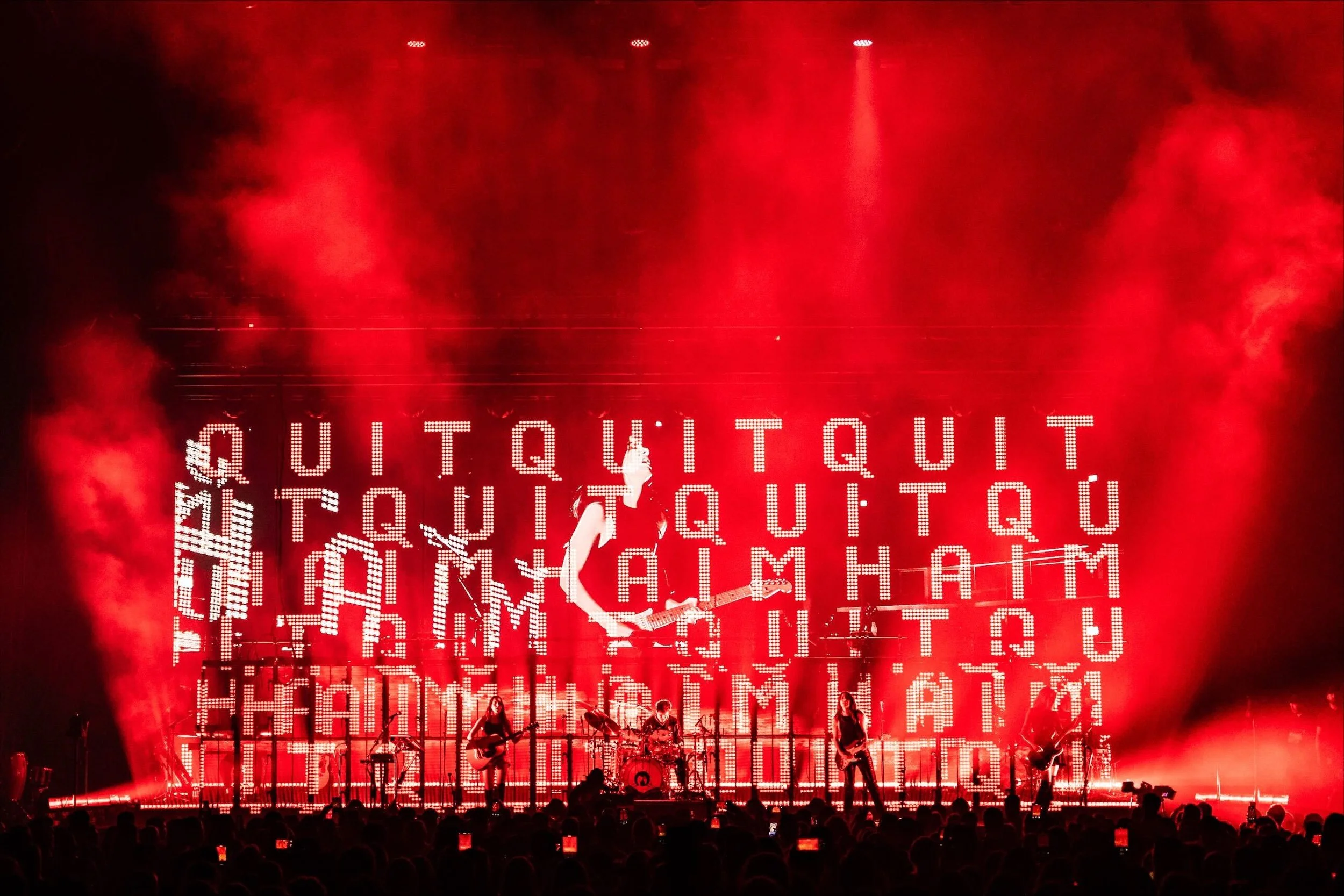 f9, in collaboration with jaw studio, designed a rock-forward show for haim’s i quit tour.
